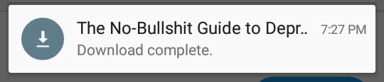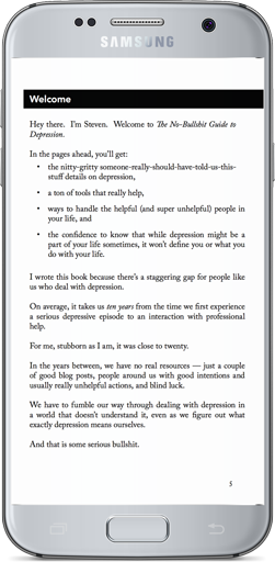 Go to this page on your Android tablet or Phone, then the button below to download the ePub version of The No-Bullshit Guide to Depression.