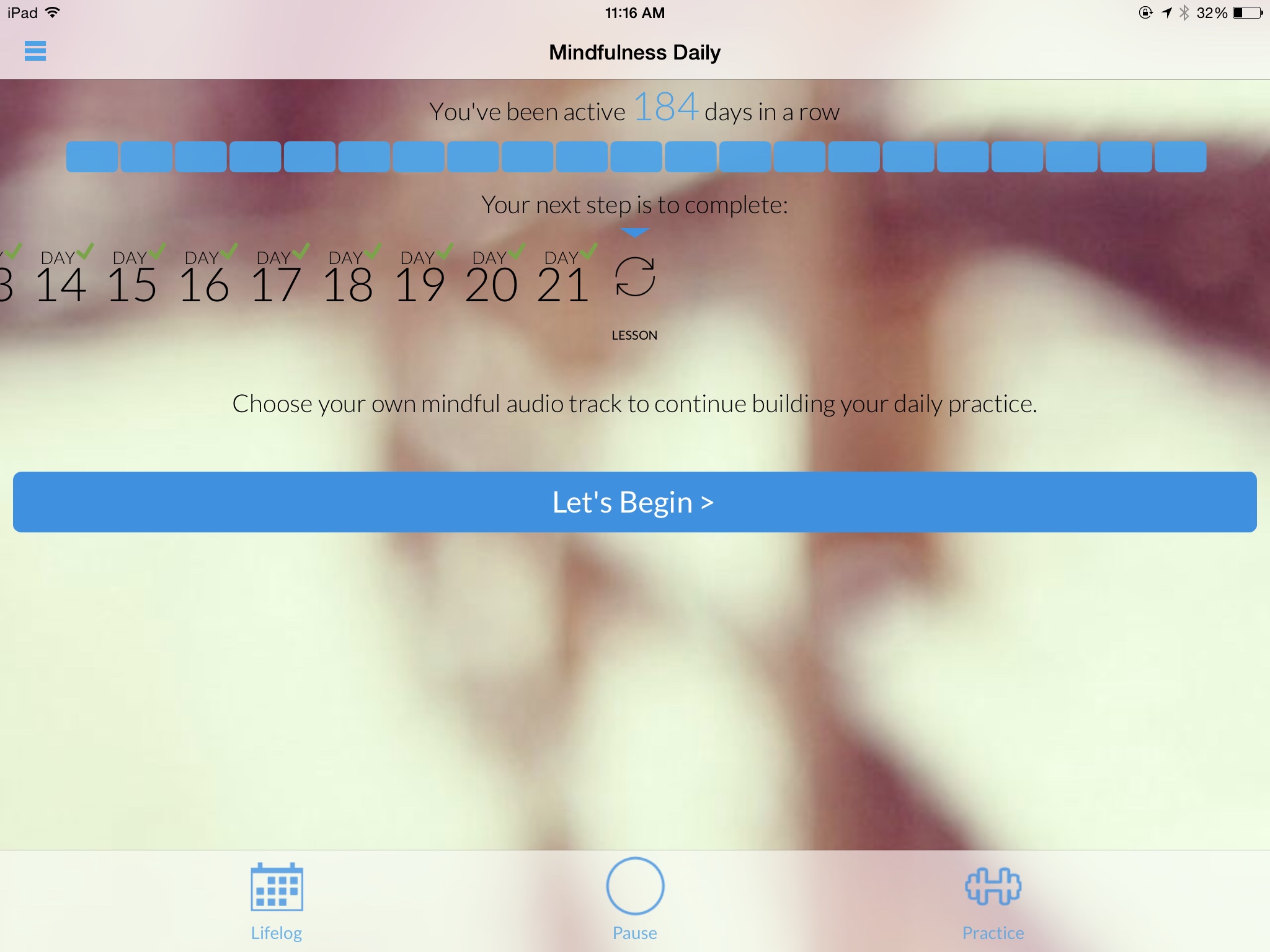 The thing I might be most proud of in the last six months: every morning, I have mediated.
